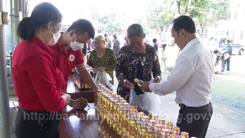 Ban tổ chức trao những phần quà cho hộ gia đình chính sách, gia đình thương binh liệt sĩ