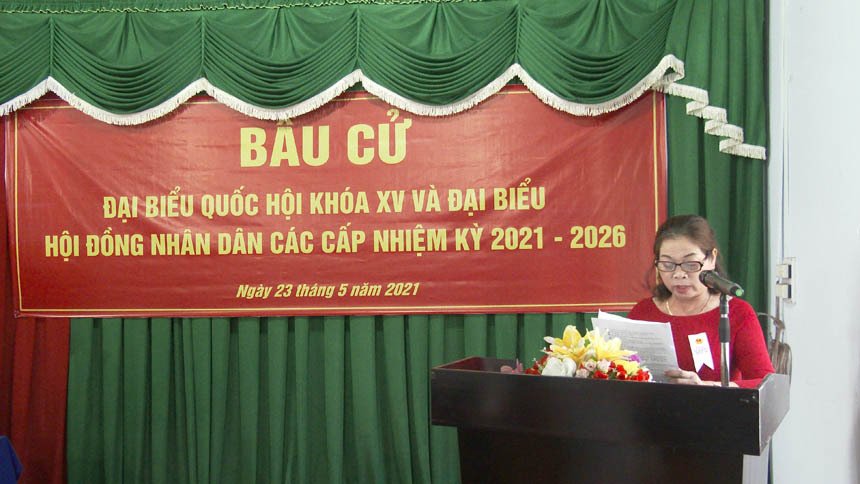 Bà Bùi Thanh Trà - Tổ Trưởng tổ bầu cử thông qua tiêu chuẩn đại biểu
