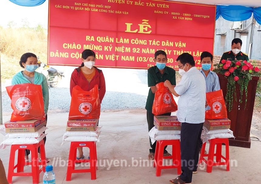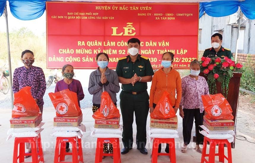Dịp này, Ban Chỉ đạo phối hợp các đơn vị Quân đội làm công tác Dân vận đã tặng 10 phần quà cho 10 hộ có hoàn cảnh khó khăn xã Tân Định. Mỗi phần quà gồm gạo, đường, mì tôm,... với tổng kinh phí 5 triệu đồng.