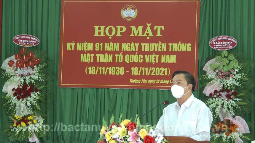 Phát biểu tại Ngày hội, ông Võ Văn Tính – Phó Bí thư Thường trực Huyện ủy, Chủ tịch HĐND huyện đã bày tỏ niềm vui, phấn khởi và biểu dương những kết quả xã Thường Tân đã đạt được trong thời gian qua. Phó Bí thư mong rằng thời gian tới nhân dân tiếp tục ủng hộ, thực hiện tốt các biện pháp phòng, chống dịch Covid-19; Đồng thời, Ủy ban MTTQ, các tổ chức Đoàn thể cần tiếp tục khơi dậy sức mạnh đại đoàn kết toàn dân tộc, phát huy ý chí, khát vọng, tinh thần thi đua sáng tạo trong mọi tầng lớp nhân dân; Tiếp tục có nhiều hành động, việc làm cụ thể, thiết thực chăm lo đời sống vật chất, tinh thần của nhân dân; chia sẻ, hỗ trợ, giúp đỡ người dân gặp khó khăn.